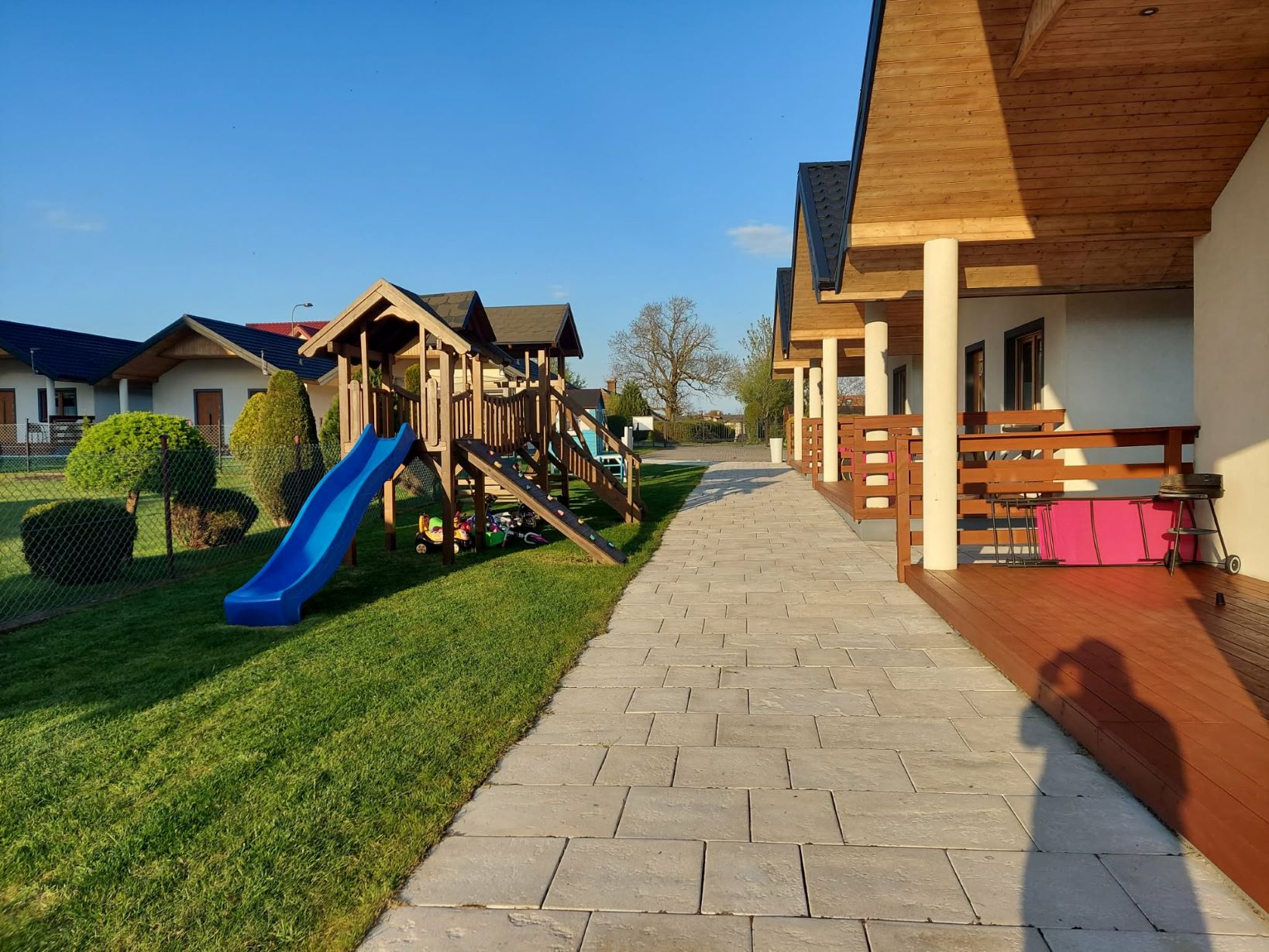 Dla naszych najmłodszych Gości przygotowaliśmy plac zabaw z dużym ogrodem oraz boisko do gry, dzięki czemu mogą bawić się z rówieśnikami i pobyć na świeżym powietrzu.
